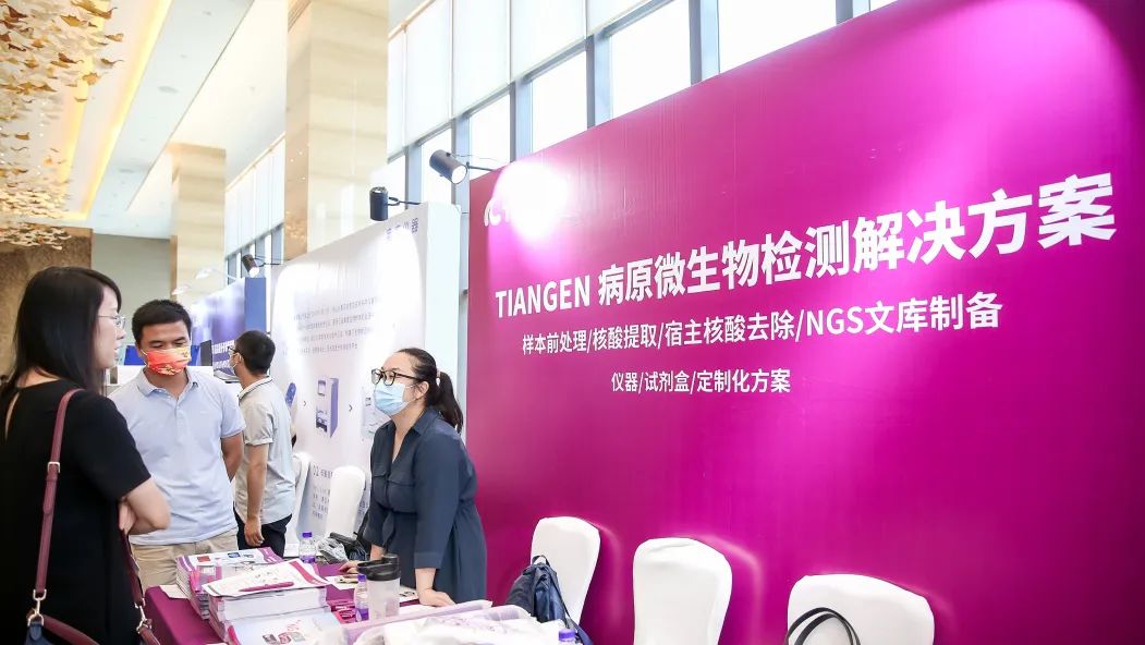 本届会议,TIANGEN带来了从样本前处理、核酸提取,宿主去除到NGS文库制备的病原微生物mNGS一站式解决方案。会议期间,来自全国各地的科研及工业研发人员对TIANGEN的病原微生物mNGS解决方案表现出浓厚的兴趣,围绕大家关注的病原微生物的核酸提取、宿主核酸去除以及背景菌控制等焦点问题,TIANGEN的工作人员与参会者进行了深入的探讨。