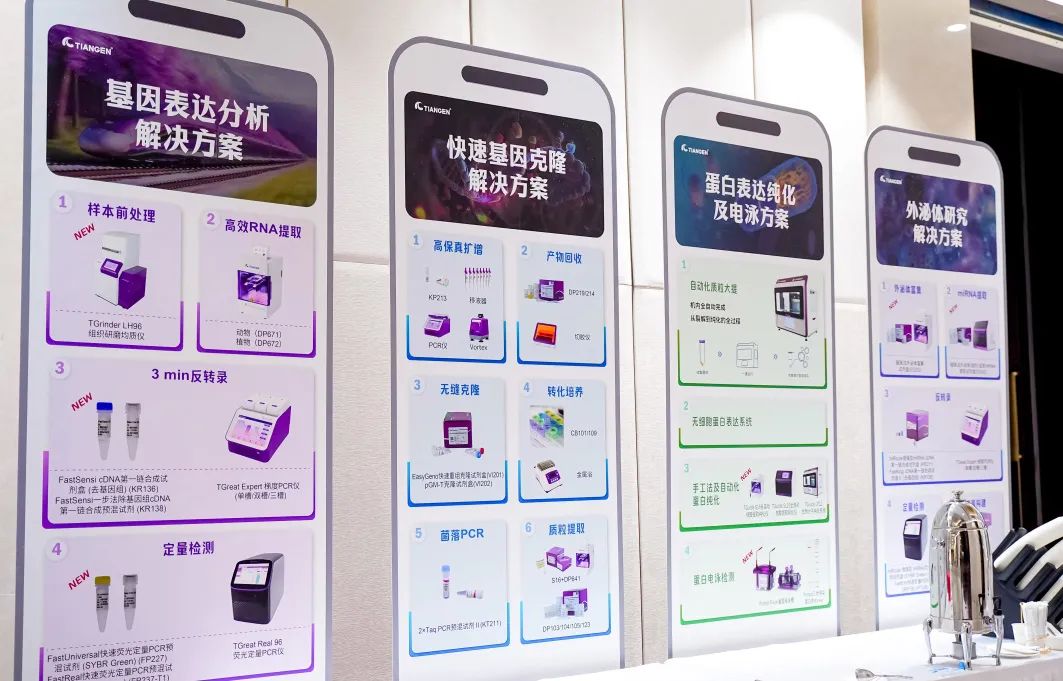 为了更好地满足不同研究方向客户的需求,天根生化陆续推出了各类专项解决方案:快速基因表达分析、快速基因克隆、蛋白表达纯化和电泳、外泌体研究等,包含试剂和仪器的整体实验解决方案深受广大科研工作者的喜爱和好评。